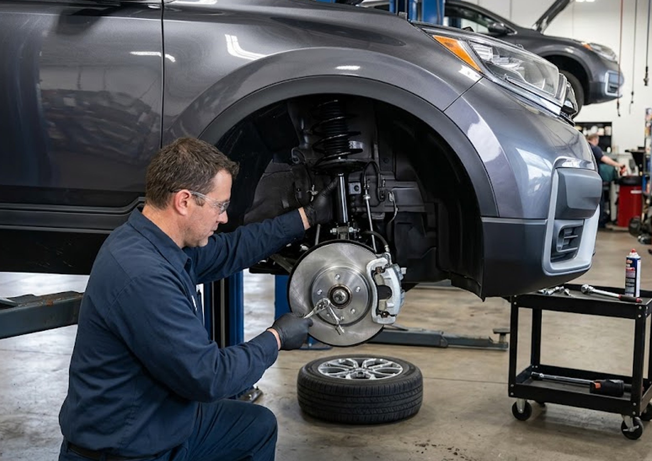Since suspension components affect braking stability, it’s often beneficial to inspect both systems at the same time. For example: